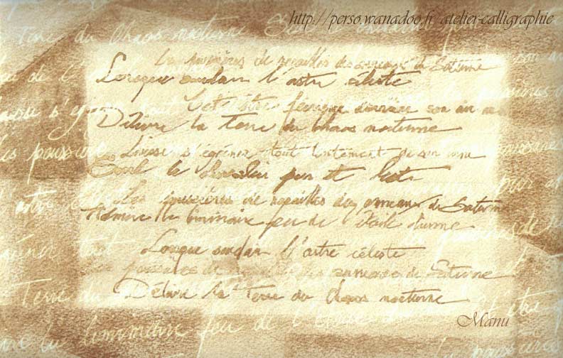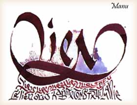 Voici les calligraphies dont je suis l'auteur. Vous pouvez en réaliser certaines vous-même en allant dans la partie "atelier" ('pour devenir adulé de tous')